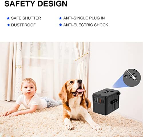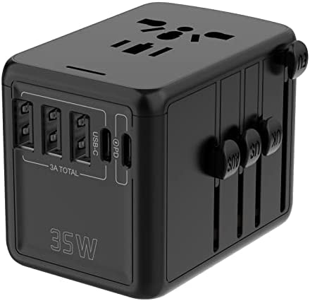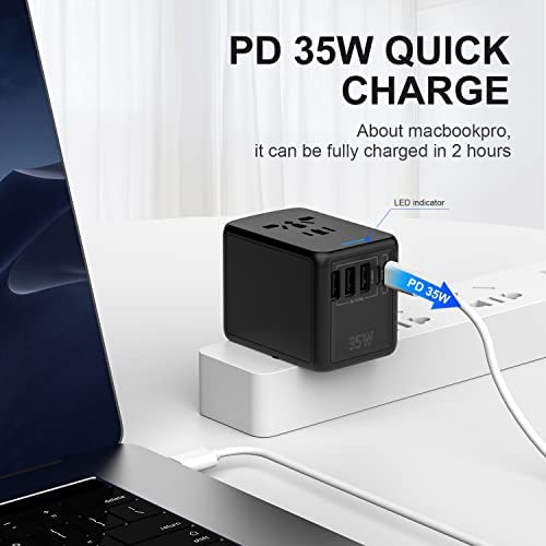 USB C & PD 35W Universal Travel Adapter,QC Fast Charger European Travel Plug Power Adapter, 3 USB & 2 Tyep-C & USA/EU/AU/UK AC Sockets, Compatible with MacBook, Laptops, iPhone, iPad Airpods & More
